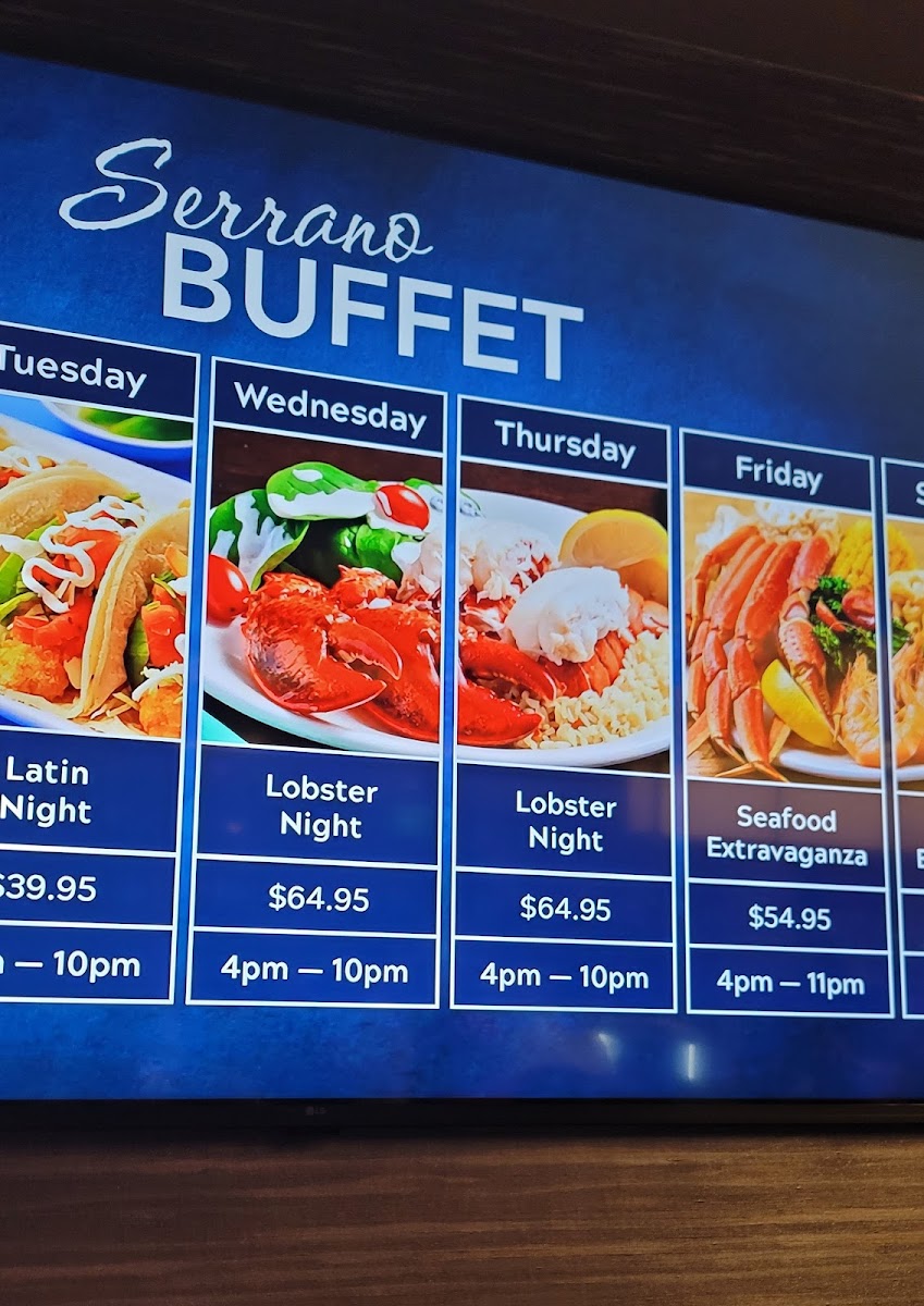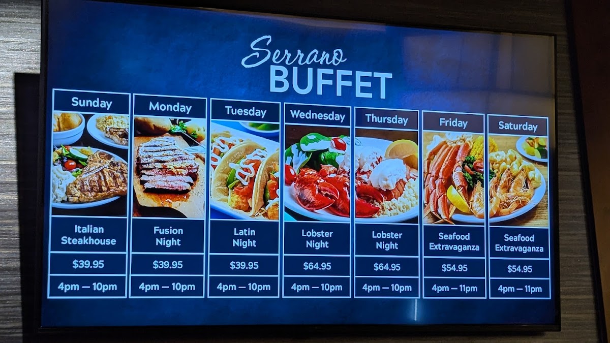 Serrano Buffet is a culinary haven that captivates diners with its exceptional all-you-can-eat offerings, featuring a delightful blend of Western and Asian cuisines. Notable for its generous portions, especially during popular events like Wednesday Lobster Night, the buffet presents an impressive variety of meats, seafood, and delectable desserts, including homemade gelato and sugar-free cheesecake. Guests enjoy a warm dining atmosphere, complemented by attentive service that leaves a lasting impression. Although some note the long wait times, the overall dining experience is well worth it for those seeking delicious, quality food in a vibrant setting.